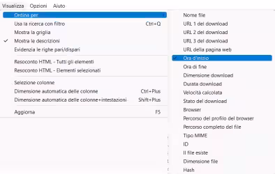 Dal menu Visualizza si possono eseguire delle ricerche con un filtro, per esempio tutti i download fatti dal sito della Nirsoft, oppure selezionare le colonne visualizzate nel report e il loro ordine, o esportare la lista in un file HTML.