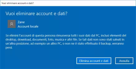 Questo comando però non cancella la cartella dell'account, quella in C:\User, con tutti i suoi file e neanche le chiavi di registro presenti in HKEY_LOCAL_MACHINE\SOFTWARE\Microsoft\Windows NT\CurrentVersion\ProfileList e HKEY_LOCAL_MACHINE\SOFTWARE\WOW6432Node\Microsoft\Windows NT\CurrentVersion\ProfileList che vanno rimosse manualmente.