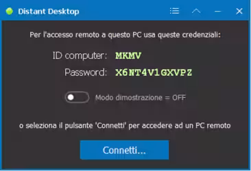 Distant Desktop non richiede installazione e potete già fornire ID Computer e password a chi vi deve dare assistenza.